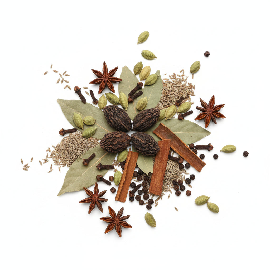 Khada Masala is a blend of carefully selected whole spices, used to infuse rich aroma and depth of flavor into Indian and Nepali cuisine. Unlike powdered spices, these whole spices release their natural oils slowly when cooked, giving dishes a fresh, authentic, and long-lasting taste.